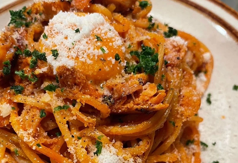 岡山の豊かな自然が育んだ旬の食材を味わえるイタリアンです。ナポリタンやポークカツレツのほかに「和風ガパオライス」や「チキン南蛮」などもいただける、メニューの豊富さもおすすめのポイント。自らを「ナポリタン狂」と称するシェフが試作を繰り返した「濃厚ナポリタン」は懐かしさの中にもほかにはない新しさを感じさせる味わいです。