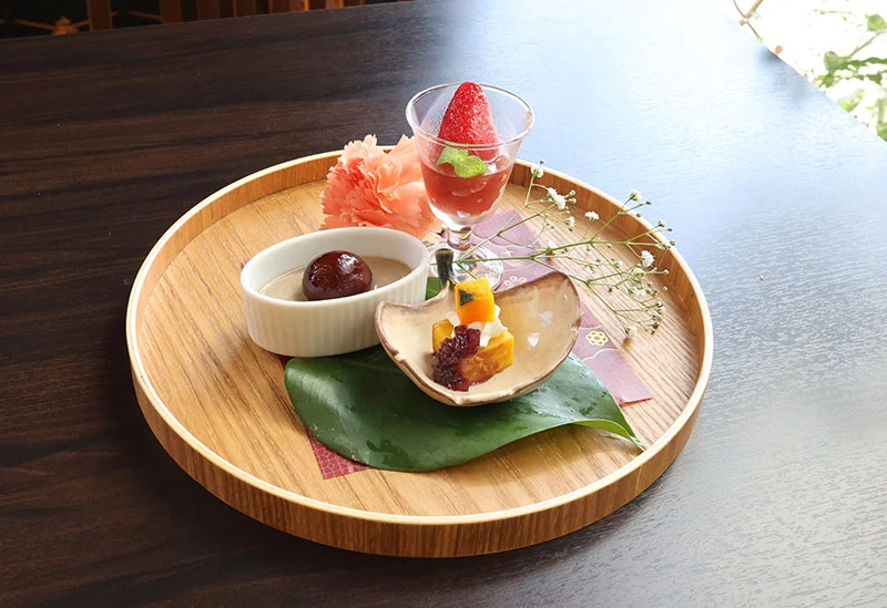 岡山市内をドライブするなら、立ち寄りたいのが「カフェ青山」です。旬のフルーツを惜しみなく使用したタルトは宝石のように美しく、パティシエの技が光る繊細な味わい。また、ランチメニューはドリンクとサラダバーがセットになっており、プラス料金を払えばタルトを追加することも可能です。駐車場も30台以上完備されているのも嬉しいポイントです。