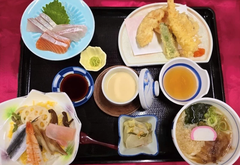 岡山県美作市にある湯郷温泉からほど近い場所に位置する食事処では、岡山の郷土料理を気軽に楽しめます。店内は天井が高く開放感があり、落ち着いた雰囲気のなかでゆったりと食事ができるのが魅力です。岡山名物のホルモンうどんをはじめ、まつりずしや天ぷら、刺身、小鉢などを盛り込んだ御膳など、郷土の味を幅広く取り揃えています。食材は地産地消を意識し、岡山県産の米を使用するなど、地元の恵みを大切にした料理が楽しめます。さらに岡山の地酒も用意されており、料理とともに味わうひとときもおすすめです。ソフトクリームや軽食、子ども向けメニューもあり、家族連れでも気軽に利用できます。観光の合間の休憩や食事に立ち寄りやすい一軒です。