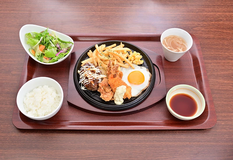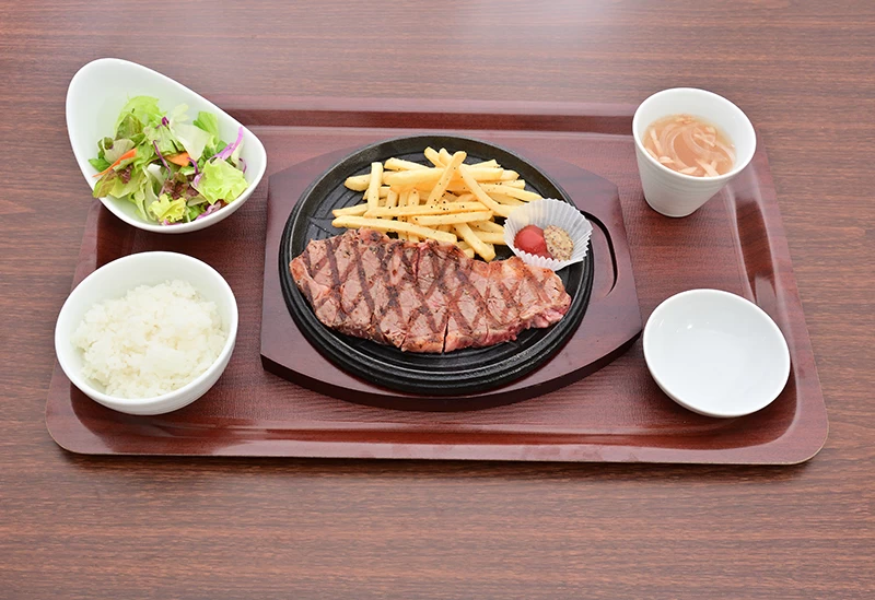 JR瀬戸大橋線・宇野みなと線大元駅から徒歩約10分。和モダンで落ち着いた雰囲気の、ステーキ・ハンバーグレストランです。広島県北部の神石牛を中心とした極上和牛や安心安全な厳選食材をお手頃価格で楽しめます。店内には石庭があり、枯山水を眺めながらゆったりと食事できるのもこのお店の魅力。唐揚げやトンカツなどのカジュアルなランチメニューも充実しています。