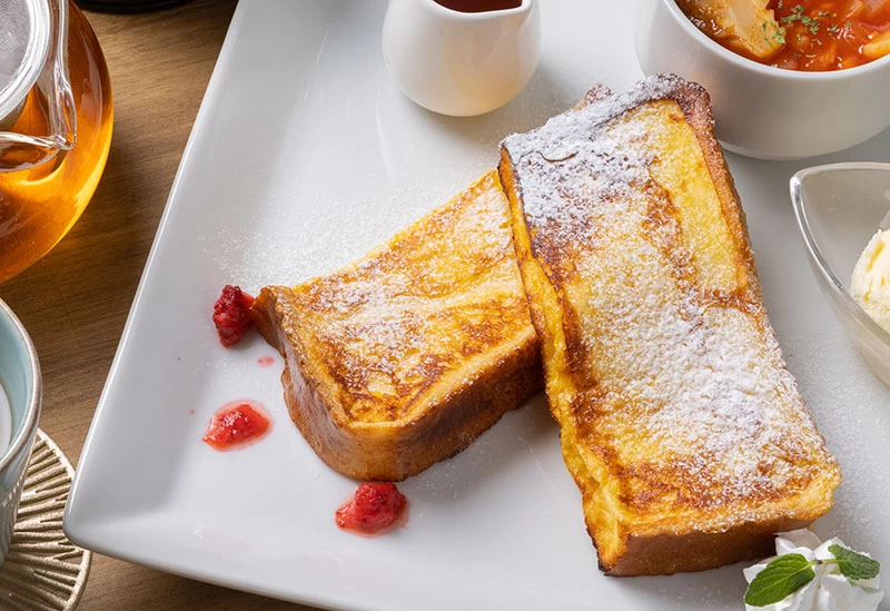 JR倉敷駅より車で約5分、徒歩で約19分。フランスのお城をモデルにした非日常的な空間で、贅沢なフレンチコース料理やカフェメニューを堪能できます。「倉敷アフタヌーンティー」のイベントにも参画しているお店で、瑞々しい果物を使った絶品スイーツの提供も。内装や器などの小物からも異国の情緒が感じられ、ランチタイムからディナーまで特別感のある時間を過ごせます。