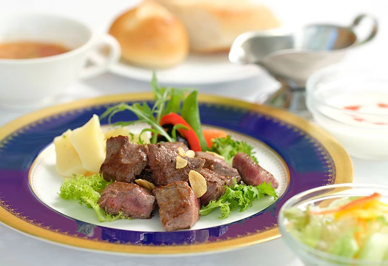 石庭を眺めながら神石牛ステーキを堪能