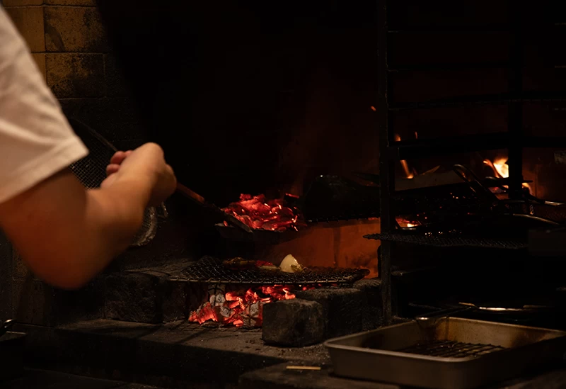 暖炉の炎とともに味わう薪火フレンチ