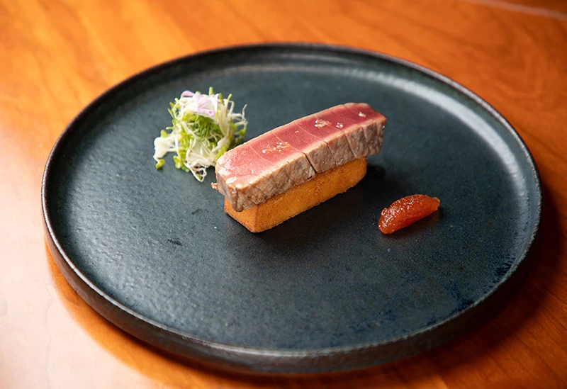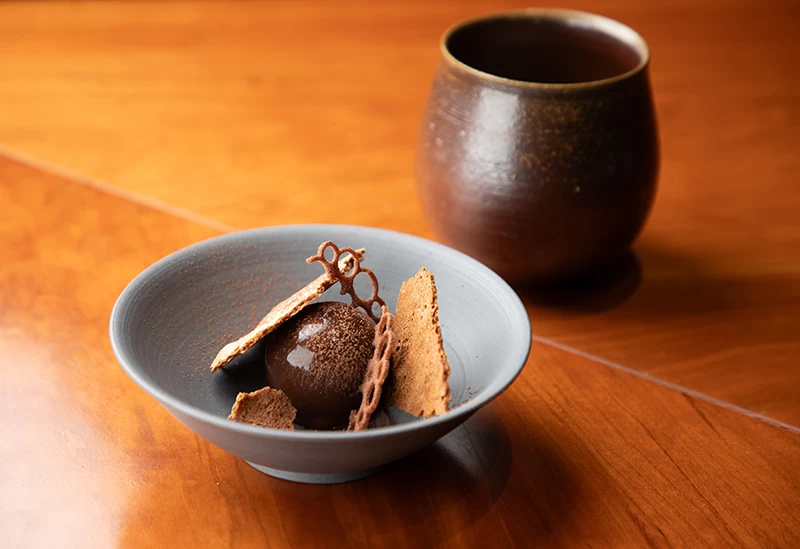 JR岡山駅から徒歩約10分の場所にある「Agni」では、旬の岡山県産食材を生かしたフランス料理をベースにした薪料理が堪能できます。店内の暖炉で焼き上げる料理は、ナラの木のやわらかな香りをまとい、炎のゆらめきとともに五感を心地よく刺激します。食事はおまかせコースのみで、アミューズから小菓子まで12~13品を用意。ナチュラルワインのペアリングをはじめ、各種ドリンクも充実しています。カウンター席では調理風景を間近に楽しめ、記念日や大切な人との特別なひとときにもおすすめです。