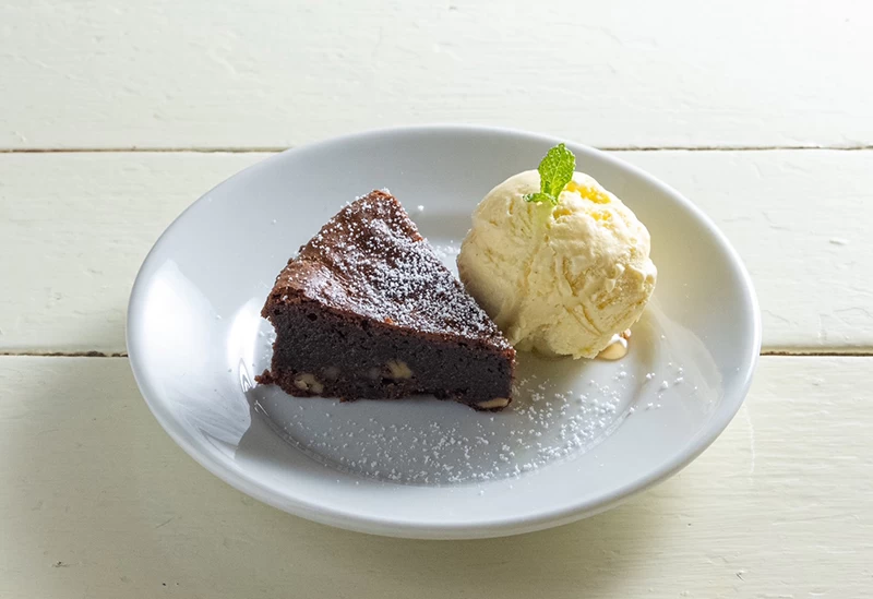 イチオシの料理はあっさりヘルシーな「ゆし豆腐入りワッフルケーキ」。女性に人気のメニューで常時提供されているので、ぜひお試しください!