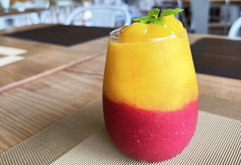 那覇空港より車で約10分の「瀬長島ウミカジテラス」内にある、おしゃれなハンモックカフェ。高級ハンモックに揺られて美しい海を眺めながらのんびり過ごせます。ドラゴンフルーツを使った生ジュース「ドラゴンマンゴーフラミンゴ」は美肌やダイエット効果抜群。マンゴーの果実やシナモンチュロス、マンゴーとバニラの2種類のアイスクリーム、グラノーラなどを組み合わせたボリューム満点の「チュロスマンゴーパフェ」もおすすめです。