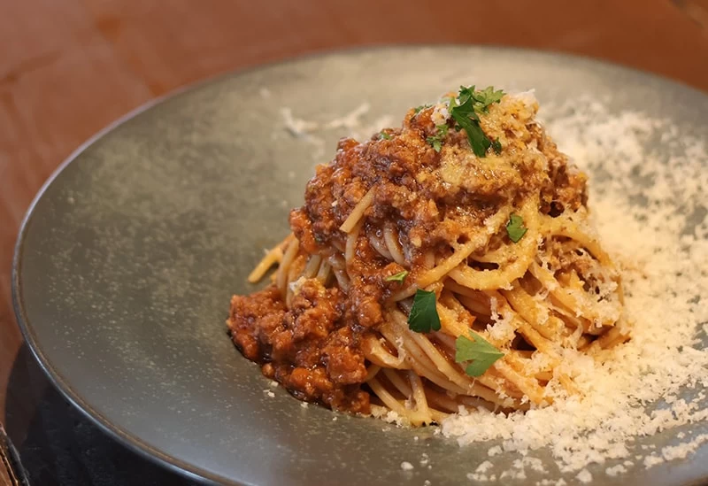 大阪で一番古い「カタシモワイナリー」のワインを使用した「やんばる島豚と黒毛和牛の河内ボロネーゼ」、炭焼きならではの香りとジューシーさを味わえる「沖縄産やんばる島豚肩ロースの炭焼き」が人気メニューです。