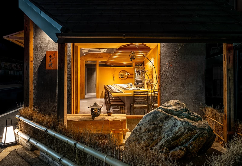 近鉄大阪上本町駅から徒歩約7分の場所に構える日本料理店。数寄屋造りの和空間でゆったりと食事を楽しめる一軒です。店主は35年以上の経験を持ち、高級料亭での修業を経て、旬の食材を丁寧に仕立てた「おまかせコース」を昼夜で提供。備長炭で焼き上げた香ばしい一皿や、熊や鴨といったジビエ料理も季節ごとに登場します。料理に合わせて選ばれた日本酒や焼酎、ワインなどの豊富なドリンクのなかには、店主の人脈で入手した希少な銘柄もあり、絶妙なペアリングが堪能できるのも魅力です。
