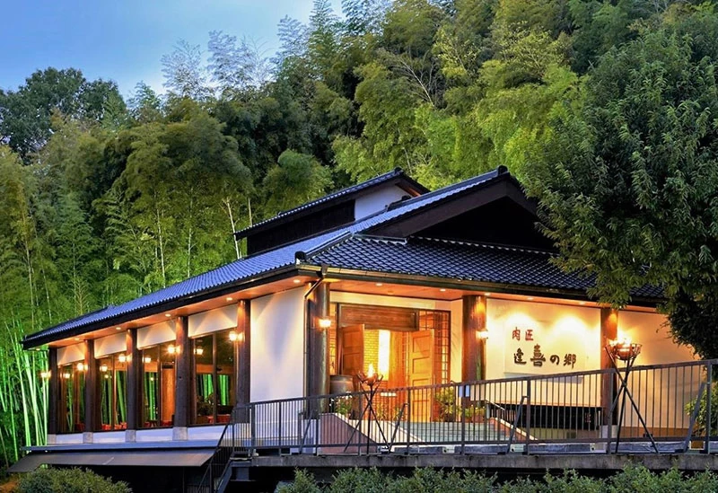 南海電鉄高野線金剛駅より車で約9分、世界遺産・高野山へと続く高野街道沿いに立つ「肉匠 逢喜の郷」は、1988年の創業以来100万人以上が訪れてきた老舗ステーキハウス。眺めの良いダイニングではリクエスト曲にも応えるグランドピアノの生演奏を楽しみながら、上質なステーキを中心としたコース料理を堪能できます。