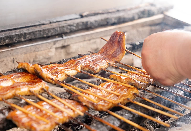 関東では、切腹を連想させる腹開きを避け、背開きにする武家文化が背景にあります。焼き方は蒸し焼きで、いったん蒸すことでふっくら柔らかく仕上がり、見た目も大きくなるため、見栄を重んじる江戸の気質に合っていたとされます。