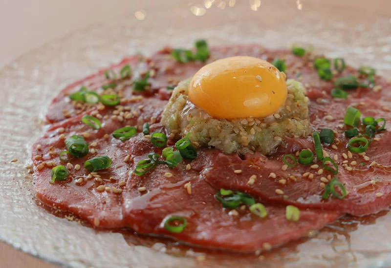 東京メトロ赤坂駅から徒歩約5分、赤坂通り沿いに店を構える牛タンバル。フレンチ出身のシェフによる、創作性あふれる極上の牛タン料理を楽しめます。なかでもイチオシは、5種のフレーバーソルトでいただく牛タンのしゃぶしゃぶ。口に入れるととろけるような食感が広がり、牛タンの新たな美味しさに出合えます。質の良い霜降り肉をリーズナブルな価格で堪能できるのは、卸業者直営店ならではの魅力です。また開放的なフロアとは対照的に少し照明を落とした個室も完備され、シックな大人の空間が広がります。