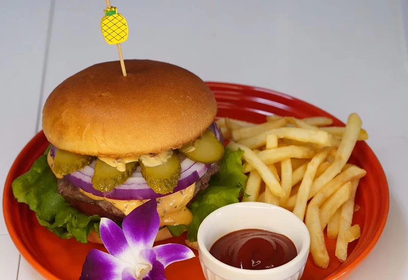 オーナーの“ハワイ愛”が店中にあふれるハワイアンダイニング。心地よい音楽やこだわりのインテリアに囲まれ、まるでハワイを訪れたような気分で食事が楽しめます。人気は、牛肉100%のパテを使ったハンバーガー。とろとろの特製ソースは、一度味わえばやみつきになるおいしさです。人気スイーツやキャッチーな見た目のドリンクも揃っており、どれも写真映えする品ばかりです。