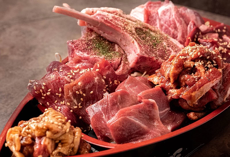 RAZAN 炭火焼肉 すすきの店のジンギスカン生ラムは、事前に下味をつけて提供されるタイプ。焼くことでさらに味わいが深くなり、お酒やご飯とも抜群の相性となります。ほのかに羊肉独特の風味が感じられるのも粋。ジンギスカン以外にも、和牛の希少部位や自家製韓国料理なども人気。