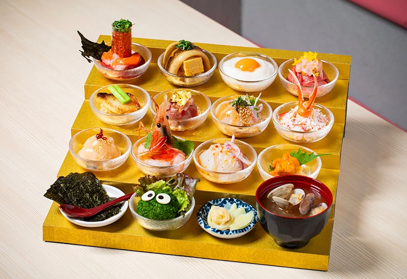 すすきの駅から徒歩約3分にあるカジュアル寿司居酒屋は、“回らない寿司”を気軽に楽しめると評判。観光客にも地元の方にも人気で、ピンクを基調とした店内や華やかな料理はSNSでも話題です。ランチ限定の小鉢丼セットでは、「イクラこぼれしだれ」や「マリモちゃんポテサラ」など、見た目もかわいらしいご当地グルメを堪能できます。予約必須で6〜12種を選べ、一度にいろいろな味を堪能できます。