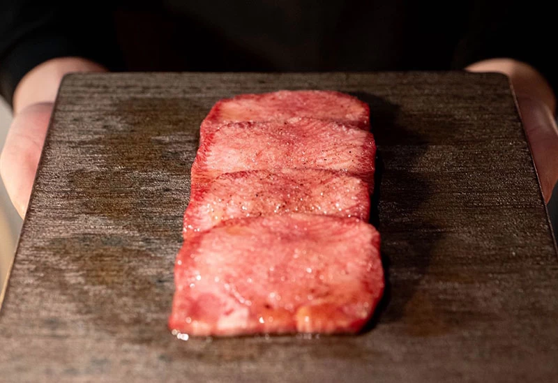 お肉は注文ごとに目の前で切り分けて提供され、鮮度の高さが感じられます。なかでも「ラム舌(タン)」は希少部位で、丁寧に仕上げられており、とても食べやすいのが特徴。噛むたびに肉汁があふれ、濃厚な旨味が口いっぱいに広がります。