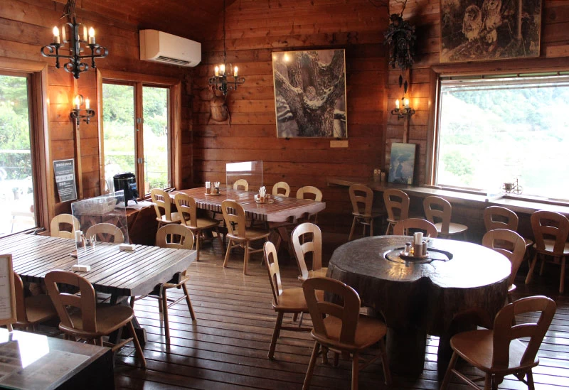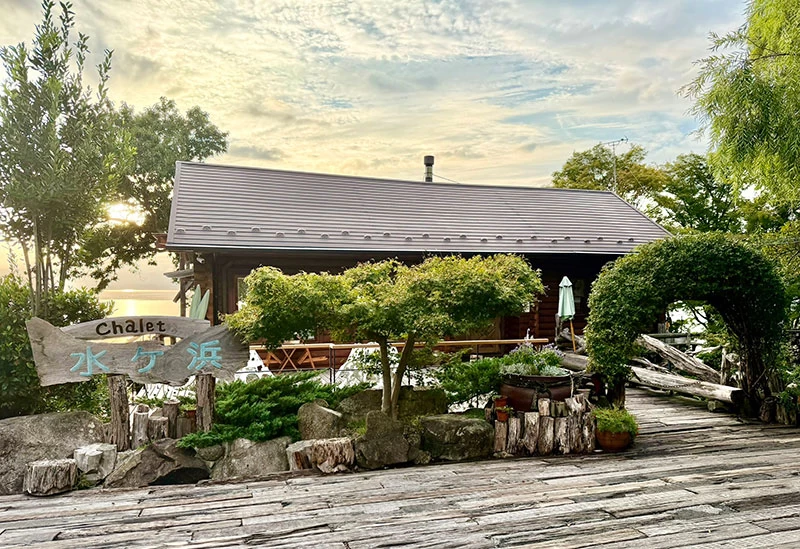 1981年創業、地元にも観光客にも愛される隠れ家的カフェは、琵琶湖のほとり高台に立つログハウス風の建物。広々としたテラス席に腰を下ろせば、湖の上に浮かんでいるかのような絶景が広がる。コーヒーはもちろん、創業当時から守り続ける「ビーフカレー」や、地元・近江八幡の農家から届く新鮮な米と野菜を使った料理、手作りデザートも楽しめ、四季折々の景色とともに自然の恵みをゆったりと味わえる。木のぬくもりを活かした空間は非日常を演出し、テラスから眺める琵琶湖の輝きが心を解きほぐす。特別な時間を過ごしたい人に贈る、湖畔の隠れ家での癒やしのひと時。日常を忘れ、静かな湖畔の風景に身を委ねる至福の一軒だ。