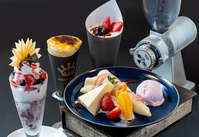 中央自動車道諏訪ICから車で約10分の「minamoto café」は、キッチンカーから始まった人気カフェの実店舗。パスタやパフェなど店舗限定のメニューが揃い、ランチにもぴったりです。名物の「クリームブリュレクレープ」は、もちもち生地を香ばしくキャラメリゼした看板スイーツ。キッズルームやソファー席を備え、子連れでもゆったりと過ごせるのも魅力です。サプライズ演出やイベント出店にも対応し、幅広いシーンで利用できます。