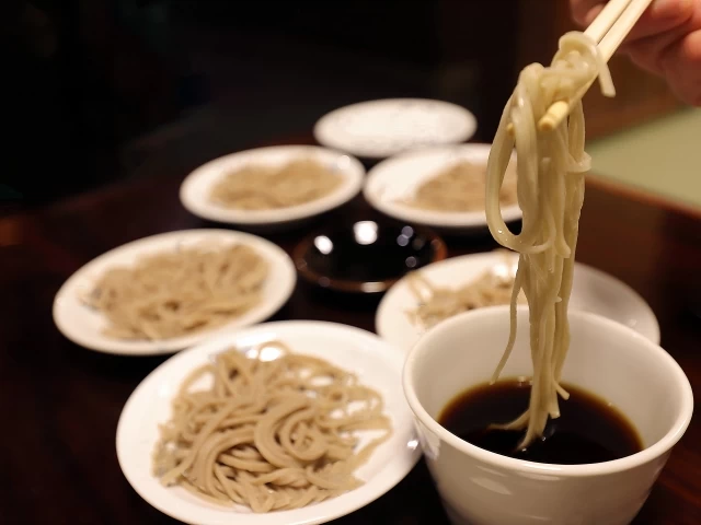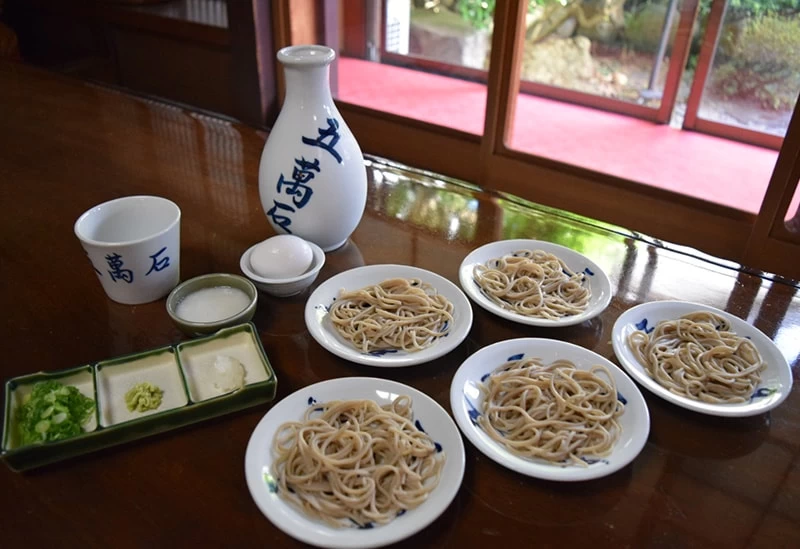 「五萬石」は、1973年創業の老舗そば店です。ここでは、「挽きたて・打ちたて・ゆがきたて」の三たてを守り続ける伝統の出石そばを堪能できます。シンプルな中にも匠の技が光るそばは、まさに絶品。出石唯一の地酒「楽々鶴」や、そば湯割りで楽しむそば焼酎も用意しており、そばとともにお楽しみいただけます。