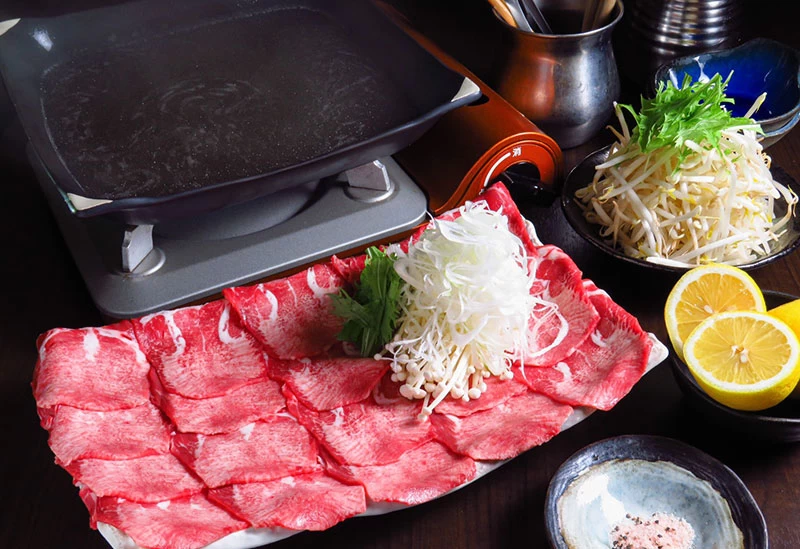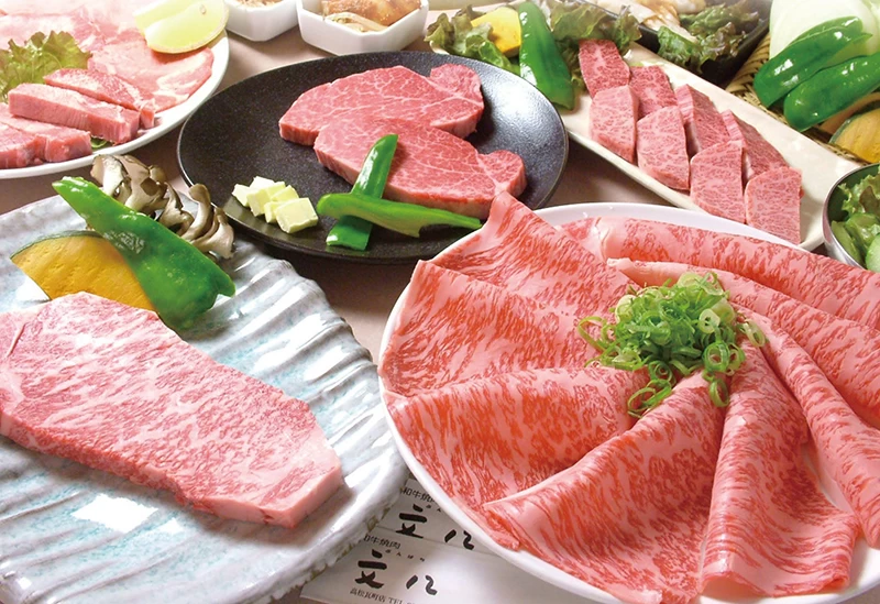 「黒毛和牛 高松文八(たかまつぶんぱち)」は、厳選された黒毛和牛をリーズナブルに味わえる焼肉店です。自家製のワサビや味噌ダレなど、豊富なタレで焼肉を楽しめます。なかでも名物の「黒毛和牛極上ロース焼しゃぶ」は、ネギとおろしポン酢でさっぱりといただくのがおすすめ。肉の濃厚な旨味が口いっぱいに広がる逸品です。店内にはソファ席や座敷席があり、個室を備えた別邸「文八はなれ」とともに、さまざまなシーンで利用できます。