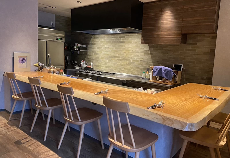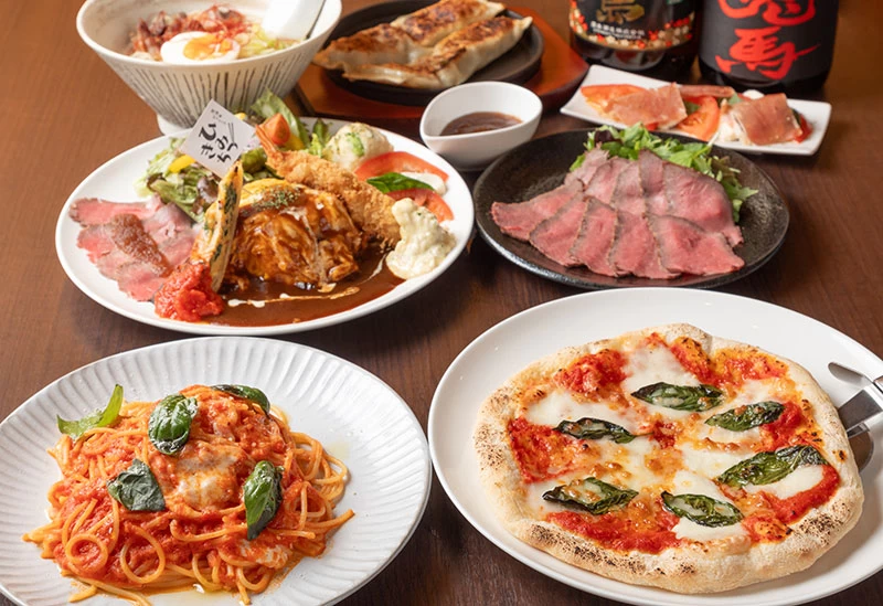 シェフの華麗な手さばきを眺めながら鉄板焼きを味わえる「創作鉄板焼 ラフアージョ」。厳選された黒毛和牛のステーキや新鮮な魚介類、農家直送の野菜をリーズナブルな価格でいただけるお店です。店内には、目の前の鉄板で食材を焼くパフォーマンスを楽しめる掘りごたつ式のカウンター席と、プライベートな食事に最適な半個室のテーブル席を完備しています。シーンに合わせた過ごし方ができるため、誕生日や記念日など、特別な日のディナーにもおすすめです。