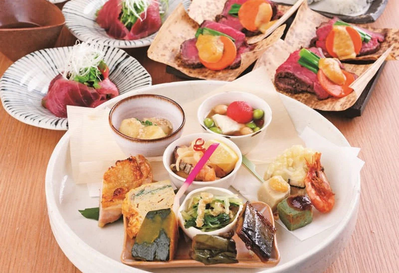 和の雰囲気漂うお洒落な店内で、京都らしさを感じるおばんざいをいただけるお店。日本橋駅から徒歩1分とアクセス良好で、移動の途中に立ち寄るのにぴったりです。たくさんの小皿に盛りつけられた彩り豊かな料理は、見た目の満足感も抜群。訪れたらぜひ注文したいのが、豊洲市場から直送された新鮮な魚介のお刺身の盛り合わせ。水揚げされたばかりの旬の海鮮を思う存分堪能できるでしょう。