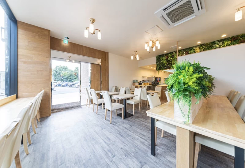 街の喧騒を忘れるウッディーモダンな空間