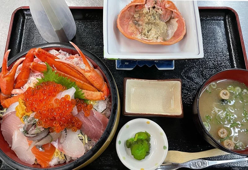 享保8(1723)年創業の老舗の料理宿が「鳥取の海の幸をもっと堪能してほしい」と2021年7月に開いた“鳥取どんぶり”店です。目の前に広がる賀露港をはじめ、山陰の港で水揚げされる活きのいい魚介類を厳選。カニはもちろん、イカ、甘エビといった海鮮をリーズナブルな価格でいただくことができます。おすすめは、甘エビと紅ズワイガニが丼一面に敷き詰められた「カニ甘エビ丼」。見た目にも鮮やかで、おなかも心も贅沢に満たされます。海岸も近いので、食後に散策を楽しんでみては?
