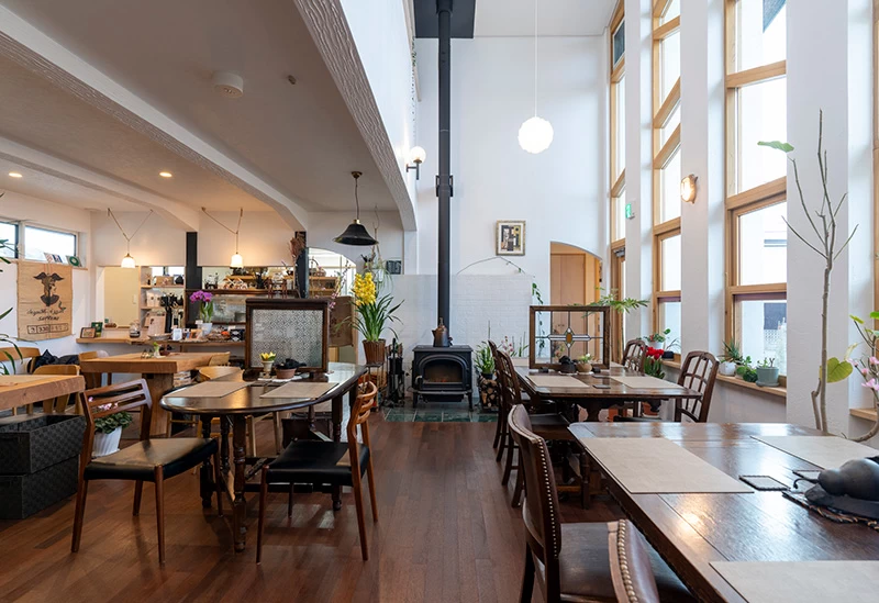 山形県上山市で、体にやさしいカフェご飯が味わえると人気のお店。無農薬の野菜や添加物を使用していない調味料など、素材にこだわった食事を提供します。料理は、口にするとつい笑顔がこぼれる素朴な味わいが魅力で、季節のケーキなどの手作りスイーツも評判です。店内には、県内外の作家が手がけた食器などを展示販売するギャラリーも併設。月ごとに展示を入れ替えているので、いつ訪れても心惹かれる新たな作品に出合えますよ。