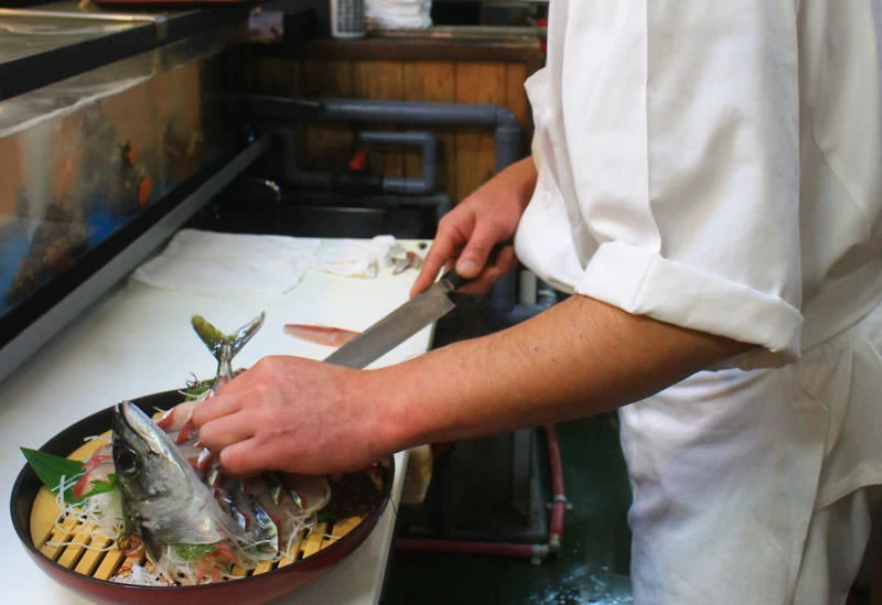 いけすで泳ぐ魚をその場で調理