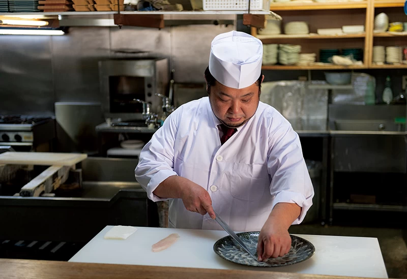 ベテラン料理人が鮮度抜群の食材を丁寧に調理