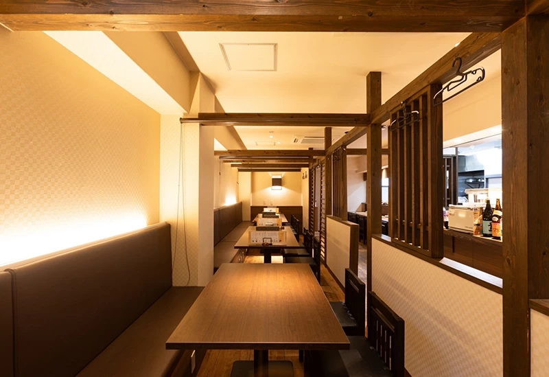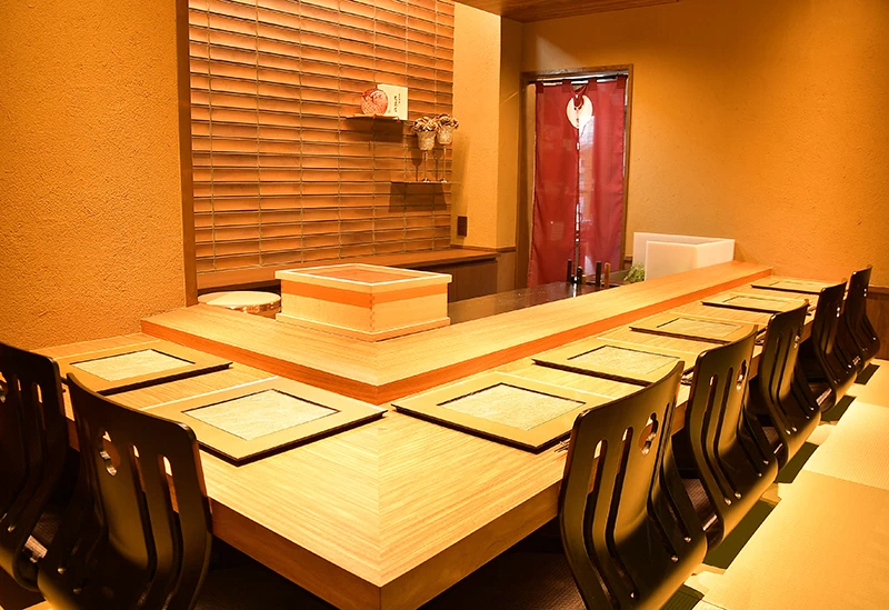 旬の魚や野菜、肉などを、落ち着いた雰囲気の中、ゆっくりと味わえる和食ダイニング。半個室は全席に仕切りを設けており、普段使いから記念日などの特別な日まで、幅広いシーンで利用できます。店主のおすすめは、瀬戸内で獲れたタコをボイルして自家製の塩ダレを絡めた逸品。プリプリの歯ごたえは、思わず顔がほころんでしまう美味しさです。地酒の種類も豊富で、食材とのペアリングを楽しめます。