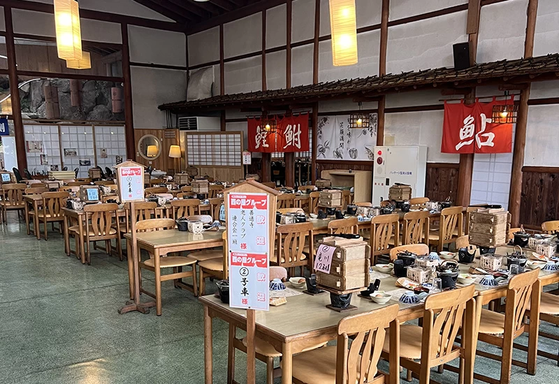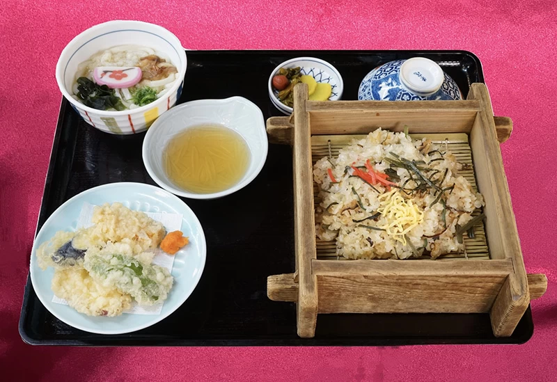 岡山県美作市にある湯郷温泉からほど近い場所に位置する食事処では、岡山の郷土料理を気軽に楽しめます。店内は天井が高く開放感があり、落ち着いた雰囲気のなかでゆったりと食事ができるのが魅力です。岡山名物のホルモンうどんをはじめ、まつりずしや天ぷら、刺身、小鉢などを盛り込んだ御膳など、郷土の味を幅広く取り揃えています。食材は地産地消を意識し、岡山県産の米を使用するなど、地元の恵みを大切にした料理が楽しめます。さらに岡山の地酒も用意されており、料理とともに味わうひとときもおすすめです。ソフトクリームや軽食、子ども向けメニューもあり、家族連れでも気軽に利用できます。観光の合間の休憩や食事に立ち寄りやすい一軒です。