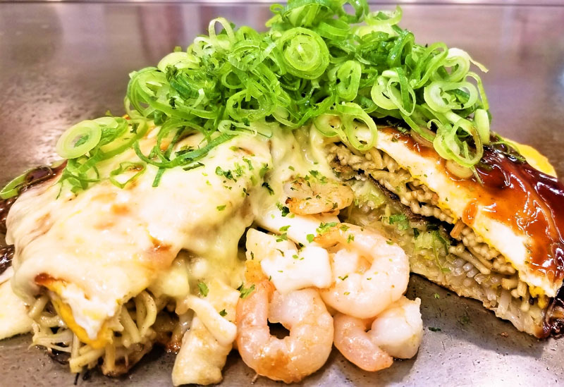 広島電鉄八丁堀電停から徒歩約5分に位置する「新天地プラザビル」。その3階「お好み村」にある人情味あふれるお好み焼きの名店。「ミシュランガイド広島2013特別版」に掲載された自慢のお好み焼きは、「磯野製麺」の生麺をその都度大釜でゆがき、こだわり抜いた削り節にはカツオ・サバ・イワシを使用。宮島沖で獲れた大粒の牡蠣のお好み焼きやバター焼きも好評で、ご当地グルメ「がんす」や「広島菜キムチ」「牛コーネ塩コショウ焼」もおすすめだ。女性に人気のトッピングのチーズをはじめ、もちを入れてボリューミーに味わいたい。