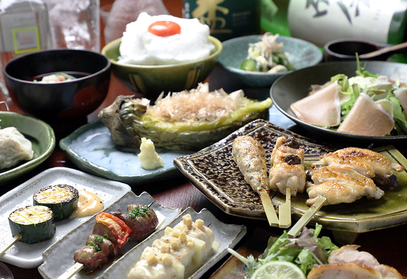 創作串や日本食のプロの技が光る一品料理も味わえる焼き鳥専門店。旬の食材をふんだんに用いた、季節やその日おすすめの串、逸品料理を3種類のコースから選べる。備長炭で一本一本丹精込めて焼き上げる薫り高い焼き鳥を、種類豊富なワインや日本酒とともに、そのペアリングを楽しみたい。「お気軽コース」をベースに創作串や一品料理に手を伸ばしたり、フルコースでおまかせするのも良い。古民家を改装した趣のある店内は、ひとりでゆったり寛げるカウンター席や、中庭を眺められるテーブル席もある。丁寧な接客も嬉しい。