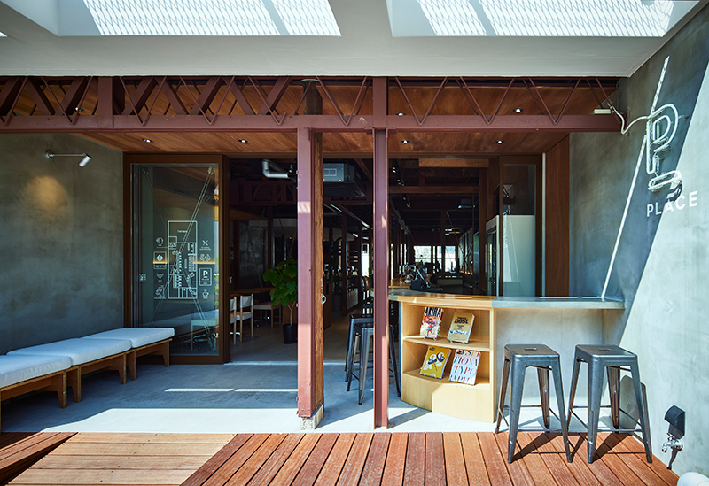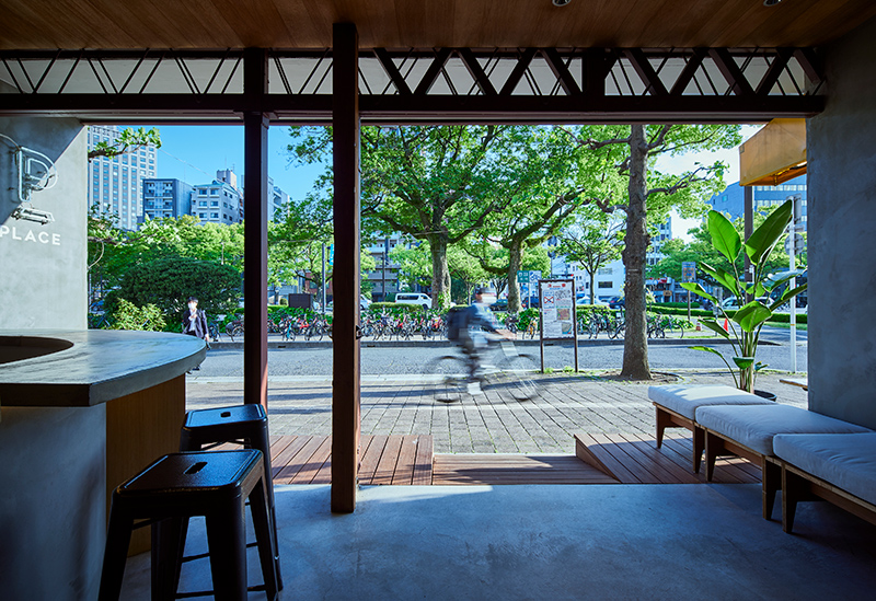 広島電鉄袋町電停から徒歩約9分の平和大通り沿いの「PLACE」は、建築設計事務所「SWITCH&Co.」が運営する新感覚カフェバー。“梁見せ天井”の開放的でお洒落な空間は居心地が良く、男女問わず気軽に立ち寄れる雰囲気で、テイクアウトができるコーヒースタンドやテラス席ではペットと一緒に寛ぐのもOK。カフェ自慢の新鮮な果実を使った季節のフレッシュジュースやカクテル、ホットサンド、スイーツなどが楽しめ、夜は大人が集うバーとしてパーティなど貸切も可能だ。