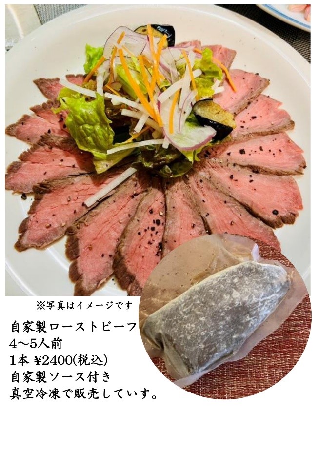 自家製ローストビーフはたくさんのお客様から好評で、テイクアウトも人気がございます。