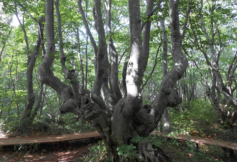 「中島台・獅子ヶ鼻湿原」は、鳥海山(ちょうかいさん)の北西山麓に広がり、世界でもめずらしい苔が群生する湿原湧水群です。異形ブナの宝庫としても知られ、樹齢約300年の巨木は「森の巨人たち百選」に選ばれています。ほかにも、湿原では複数の湧水カ所を見られるため、見どころが多いのが特徴。例年10月中旬から下旬にかけて紅葉の見頃を迎え、整備された歩道から景色を眺めながら散策やトレッキングが楽しめます。