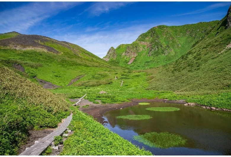 「森吉山(もりよしざん)」は、「花の百名山」のひとつに数えられ、初夏から秋にかけては約300種類の高山植物が咲き誇る複式火山です。秋田県立自然公園に制定されており、山頂からは田沢湖や白神山地、男鹿半島を一望できます。トレッキングコースは、事前に申し込みをすれば森吉山周辺を熟知したガイドに案内してもらうことも可能。設置されたゴンドラを利用することで、10月の紅葉シーズンは空中散歩も満喫できます。