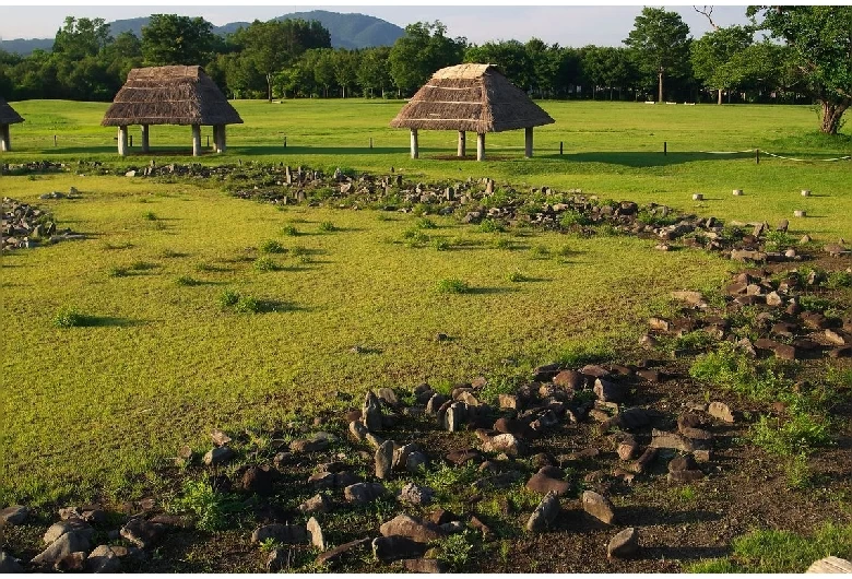 「大湯環状列石(おおゆかんじょうれっせき)」は、2つの環状列石を主体とする縄文時代後期の大規模な遺跡です。世界遺産「北海道・北東北の縄文遺跡群」を構成する遺跡のひとつで、ストーンサークルともいわれています。敷地内には遺構をもとに復元した建物もあり、当時の生活を学ぶことが可能。例年10月中旬から下旬にかけて落葉樹が色づき、その期間は縄文時代の生活と自然美が融合した景観を楽しめます。