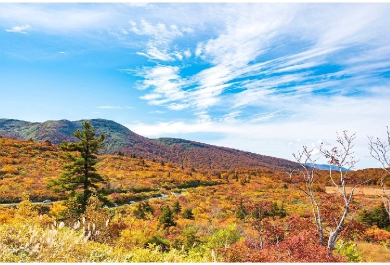 「須川高原」は火山湖や渓谷、ブナ原生林などの多彩な景観を楽しめる栗駒山の中腹に広がる高原です。標高約1,100mに位置し、例年9月下旬から10月上旬に見頃を迎える紅葉シーズンには、黄色をはじめ、赤色や緑色が織りなす広大な景色を楽しめます。高原を散策したあとは麓にある山荘を訪れ、紅葉を見渡しながらゆっくり露天風呂に浸かって寛ぎましょう。