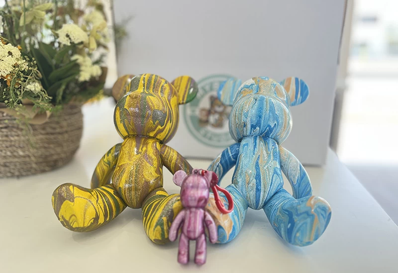 南あわじの観光ルートに組み込みやすい体験型アートスタジオ「MYBEAR STUDIO 淡路島」では、世界にひとつだけの作品づくりが楽しめます。15色以上の絵の具やラメを使って、クマやイヌなどのフィギュアを自由にペイント。サイズはキーホルダータイプから約1メートルの大型まで多彩に揃っています。また、8種のチェーンと約300種のチャームを組み合わせるアクセサリー作りも人気。子どもから大人まで夢中になれる体験は、思い出やギフトにもぴったりです。