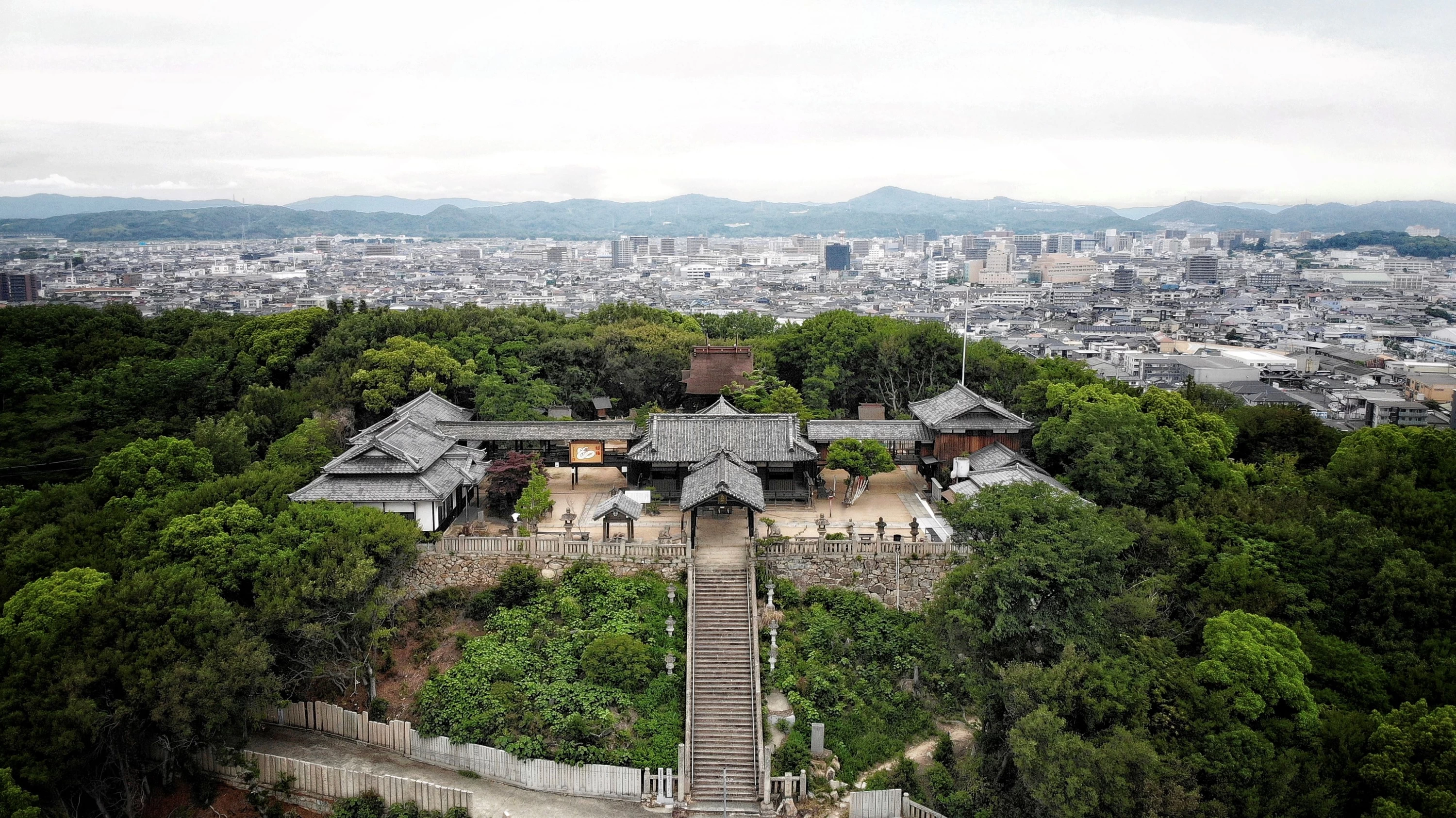岡山県倉敷市の足高山山頂に鎮座する足高神社は、第10代崇神天皇の代に創建されたと伝わる式内社で、「延喜式神名帳」に記載の備中18社の一つです。かつて一帯は四方を海に囲まれた島で、往来の船は帆を下げて航海の安全を祈願する習わしがあり、怠れば転覆すると伝わりました。この由来から“備中帆下げの宮”と崇められ、1695年(元禄8年)に現在の山頂へ遷座。社蔵の古文献には、ここから一望できた「400年以上前の瀬戸内海の面影」が記され、近年は地元小学校の卒業記念植樹による桜並木も整備。春には境内や参道で桜が咲き誇る風景が楽しめます。