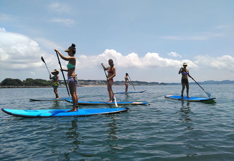 「江ノ島 3E」は、愛犬と一緒にウィンドサーフィンやSUPを体験できるスクールです。初心者向けのレッスンが充実しており、インストラクターが丁寧に指導してくれるため、初めての方でも安心して挑戦できます。ライフジャケットやボードはレンタル可能なため、手ぶらで気軽に楽しめるのも魅力。海上から眺める江ノ島の絶景は格別で、愛犬との忘れられない思い出になるでしょう。