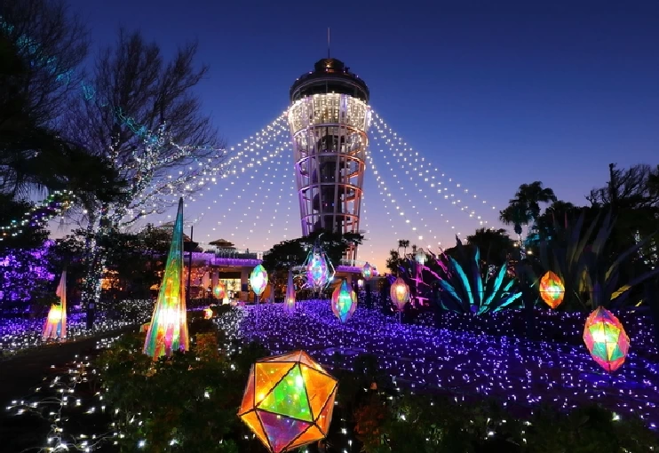 「江の島サムエル・コッキング苑」は、英国人貿易商であるサムエル・コッキングが造った植物園跡地に整備された庭園です。冬季のイルミネーションは、関東三大イルミネーションのひとつに数えられています。シンボルタワーの「シーキャンドル」からは、湘南海岸の絶景を一望できます。園内にはカフェも併設されているため、愛犬と一緒にお茶を楽しみましょう。
