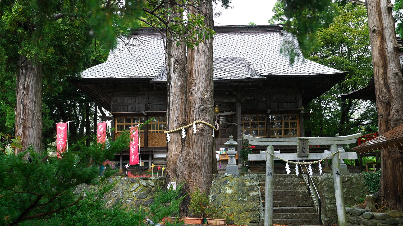 「白根三吉神社」は、昔話『聞き耳頭巾』に登場する三吉のように「さんきちさまはききみみずきん」として人々の心の拠り所となってきた神社。「三吉霊神(みよしのおおかみ)」「大己貴大神(おおなむちのかみ)」「少彦名大神(すくなひこなのおおかみ)」の三柱が御祭神として祀られています。新しさを感じさせる鳥居や社殿は、東日本大震災からの復興を願い、2016(平成28)年に建立されたもの。手水舎には季節ごとにガラスの「浮き玉」が浮かべられ、参拝者の目を楽しませています。