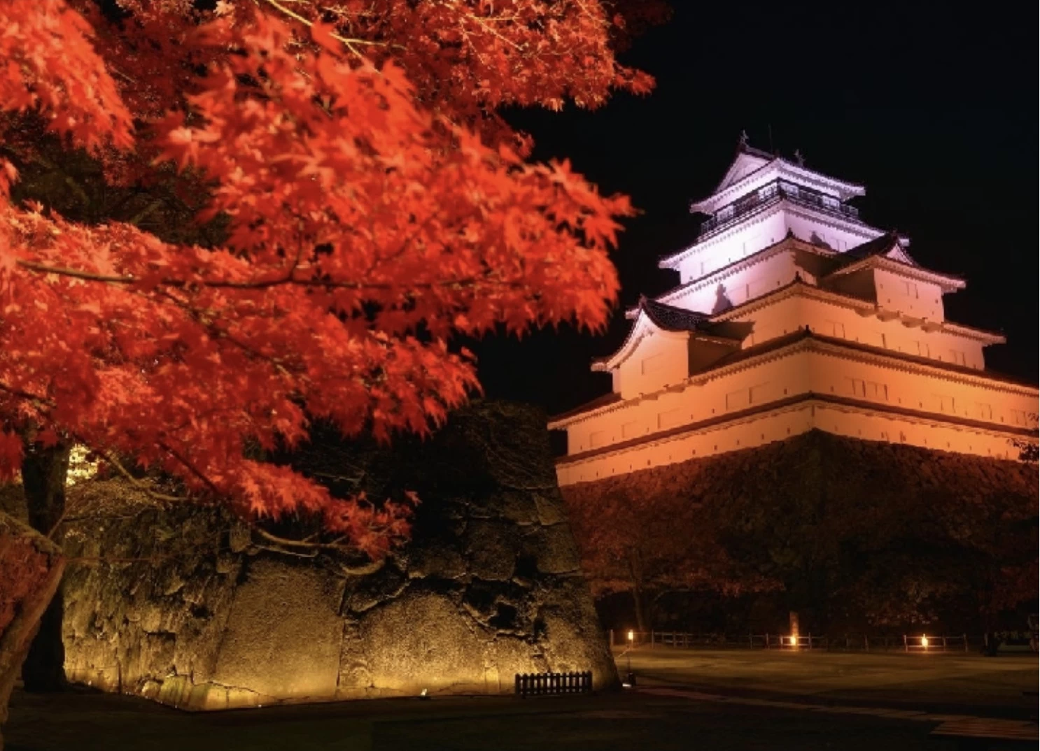 「鶴ヶ城(会津若松城)」は国内で数少ない、赤瓦をまとった天守閣が特徴の、会津若松市を代表する名城です。天守閣の内部は博物館になっており、会津の歴史に触れられます。館内で開催されている、プロジェクションマッピングでは、白虎隊をはじめとした6種類の映像を楽しむことが可能。紅葉の時期には、赤や黄色に色づいたモミジやサクラ、イチョウが天守閣と調和し、城全体を彩る壮麗な光景が広がります。