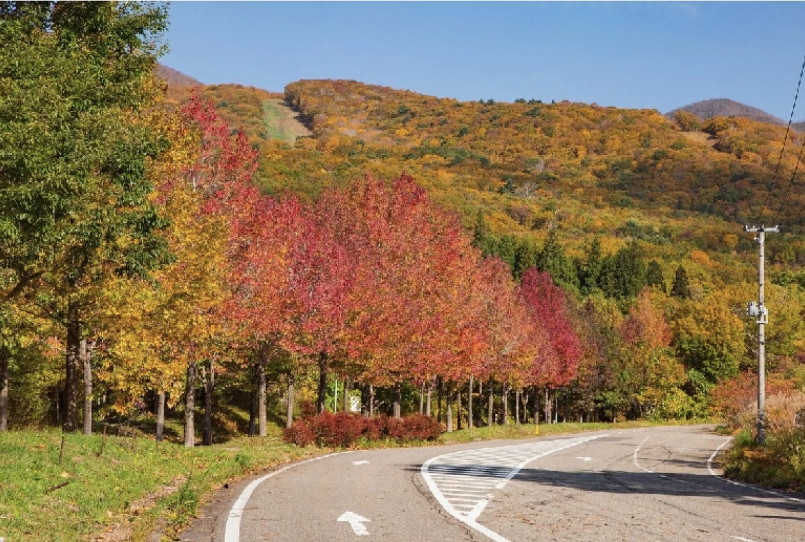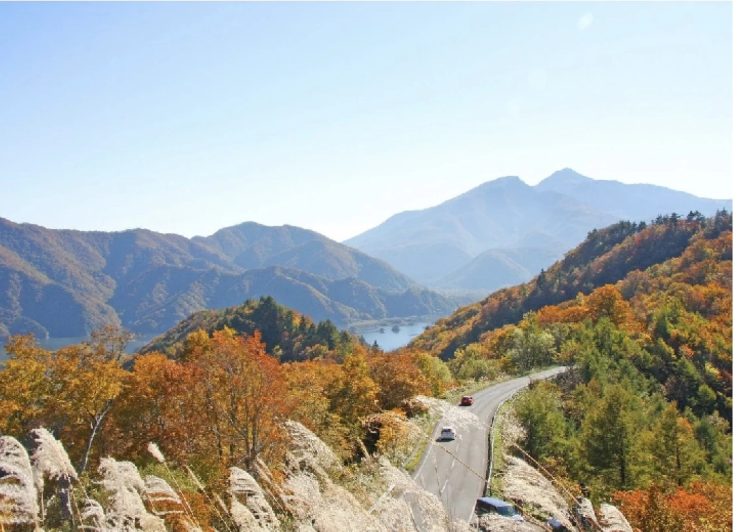 「磐梯吾妻レークライン」は、裏磐梯の秋元湖や小野川湖、桧原湖などの湖沼を望めるドライブコースです。このスポットでは、新緑から紅葉の季節まで長い期間にわたって大自然の美しさを満喫でき、ドライブやサイクリングを楽しむ人々でにぎわいます。10月中旬から下旬にかけての紅葉シーズンには、赤や黄金色に染まる山々が織り成すグラデーションが広がり、圧巻の景色が見られます。