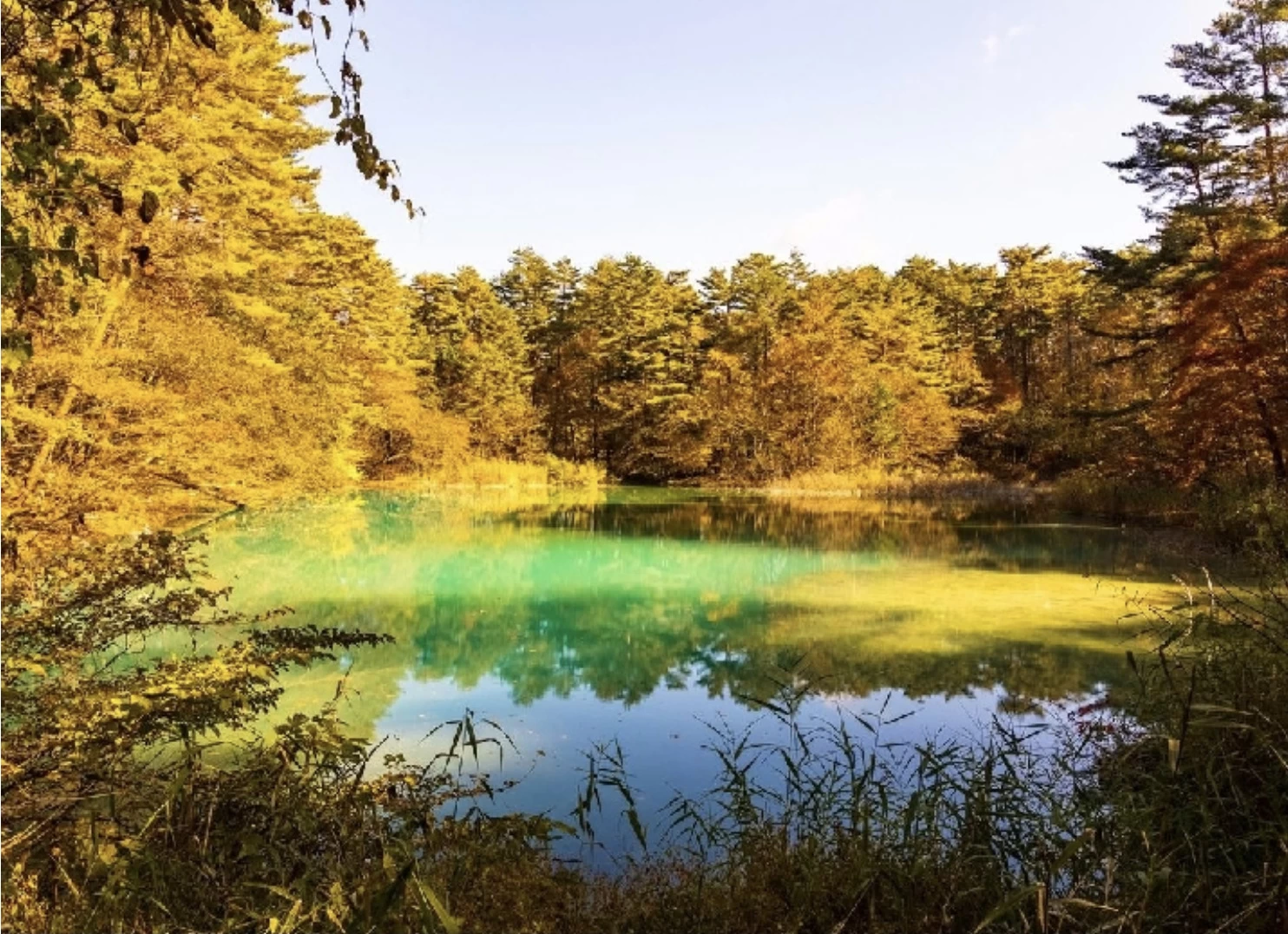 「五色沼」は、毘沙門沼やるり沼、青沼など、磐梯山の噴火によって生まれた数種の沼が集まる湖沼群です。沼ごとにエメラルドグリーンやコバルトブルー、ターコイズブルーなど異なる色を見せることから、「神秘の湖沼」とも呼ばれています。紅葉の見頃は例年10月中旬から11月上旬で、色づく木々と水面の鮮やかな色彩が織り成す情景が広がります。