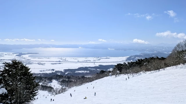雪質はサラサラとしており、地形を活かしたロングランコースでは爽快な滑走が楽しめます。アクセスも良く温泉地から近いため、滑った後は温泉でゆっくりと疲れを癒やしましょう。