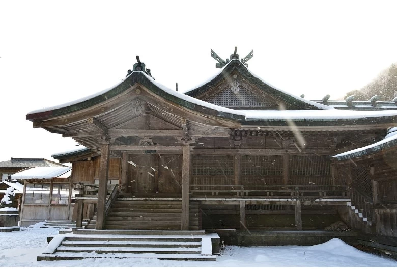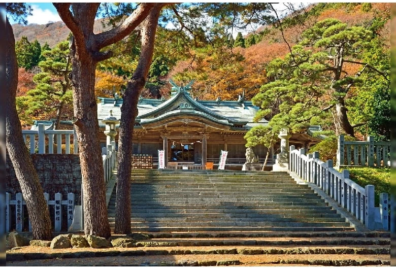 1445年創建の「函館八幡宮」。明治時代に入り開拓使は当宮を崇敬社と定め、1880年(明治13年)に現在地に移設されました。現在の社殿は1915年にかけて改築されたもので、現在は恋愛のパワースポットとしても人気。